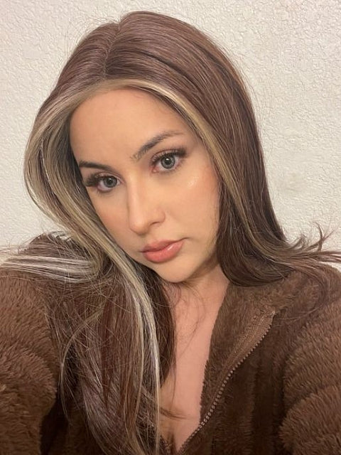 Pretty Medium Light Auburn with Ginger Blonde Straight Synthetic Lace Part Wig